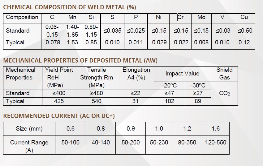 CHW-50C6SM adalah kawat baja paduan rendah tembaga dengan semua pengelasan posisi. Kawat memiliki kinerja pengelasan yang sangat baik dan logam las menunjukkan ketangguhan dampak suhu yang lebih rendah.